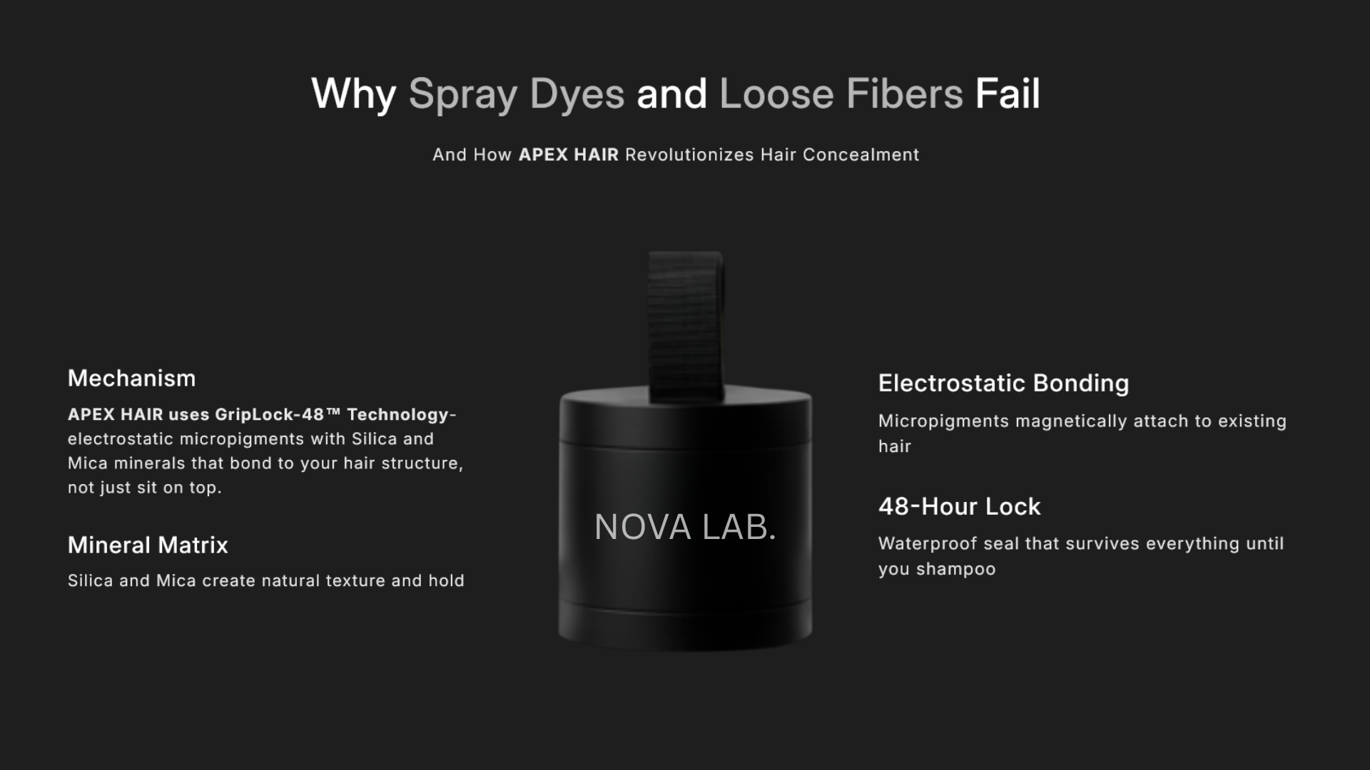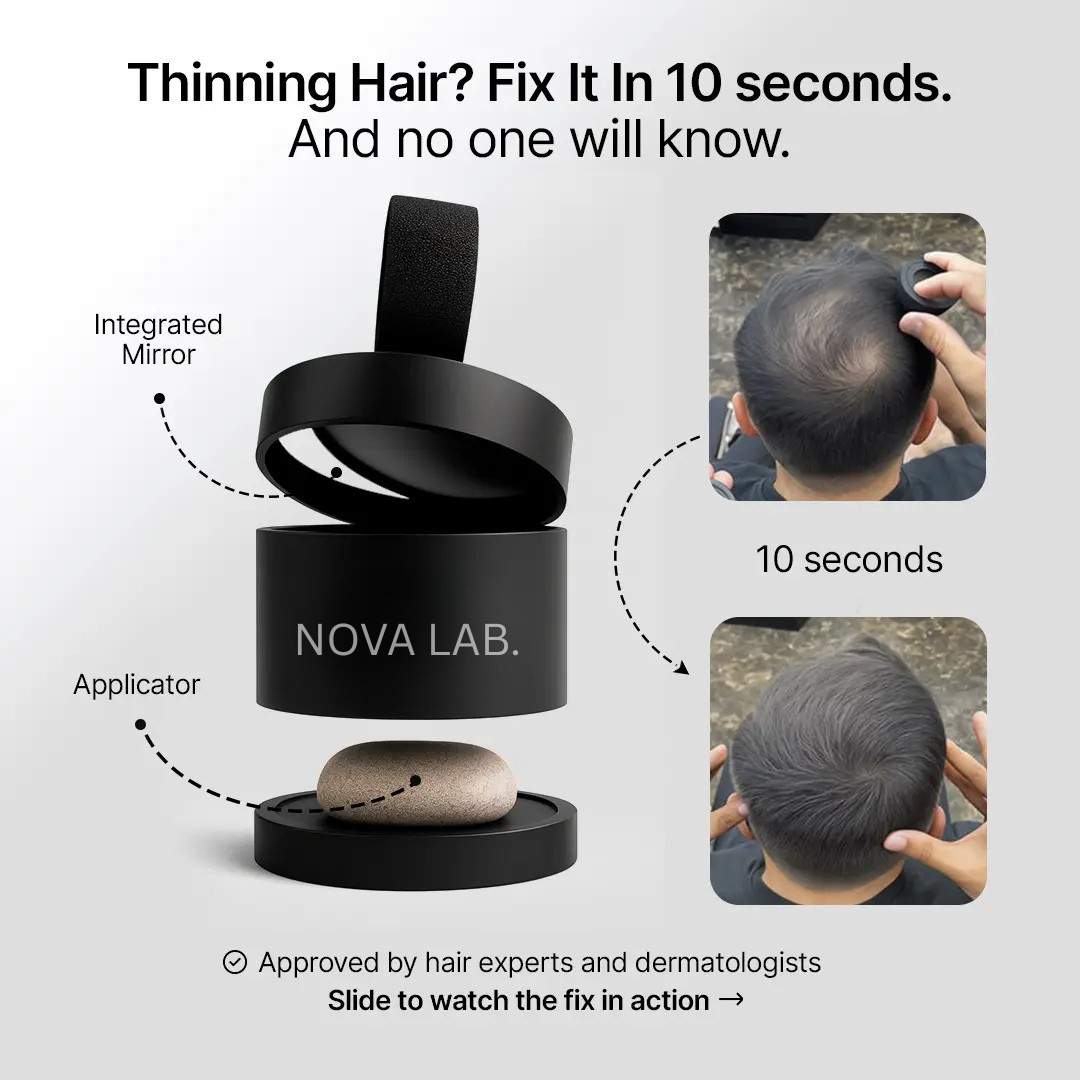 Instantly covers bald spots and thinning hair with the new grooming essential tool for men with hair loss.